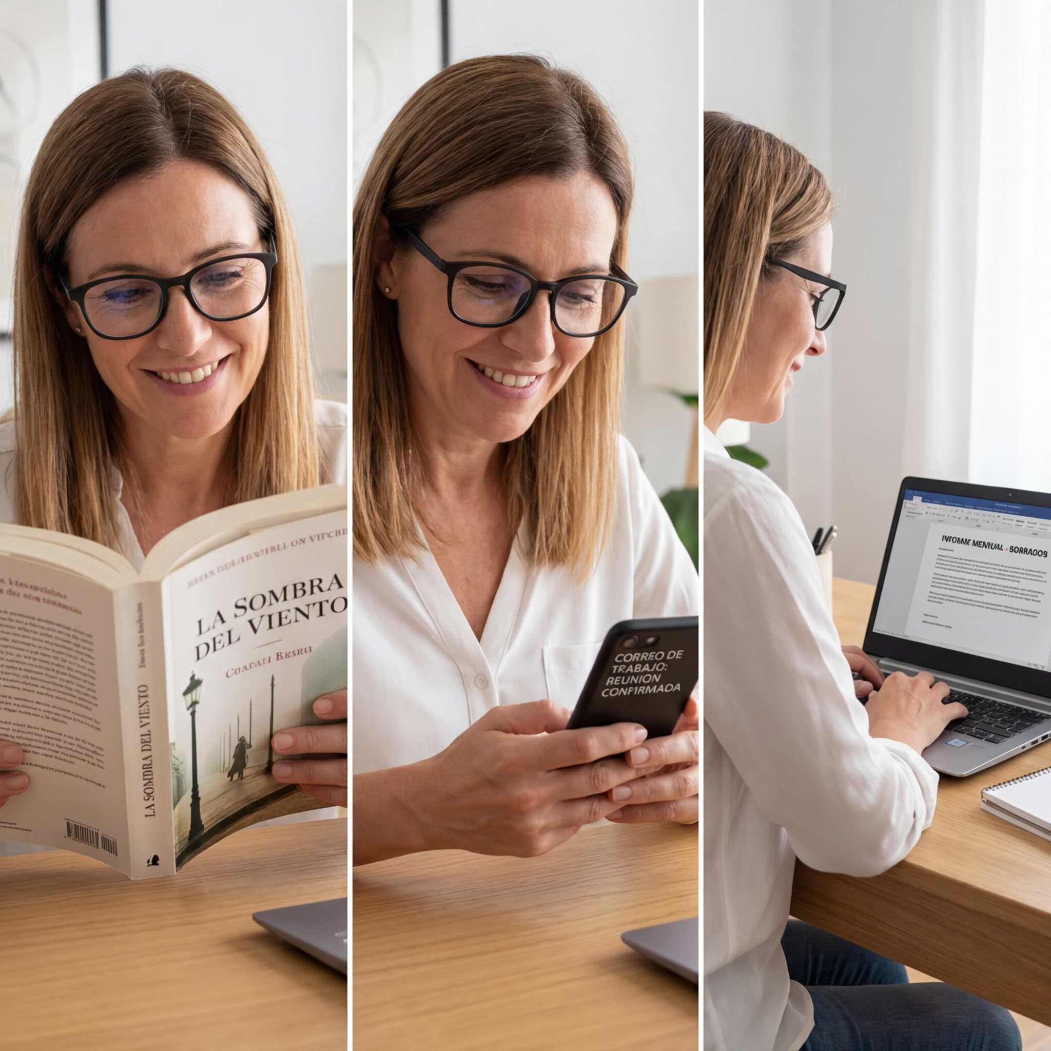 ❌ PROBLEMA: Cambias constantemente entre gafas de lectura, ordenador y móvil